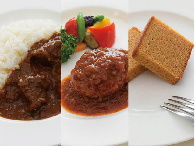 特製ビーフカレー4食・特製煮込みハンバーグ4食・キャラメルパウンドケーキ1本〈冷凍〉