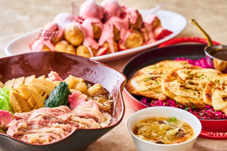 クロスダインおすすめのジューシーローストビーフや白麻婆豆腐、杏仁豆腐やピスタチオのバスクチーズケーキなどのスイーツもご堪能ください。